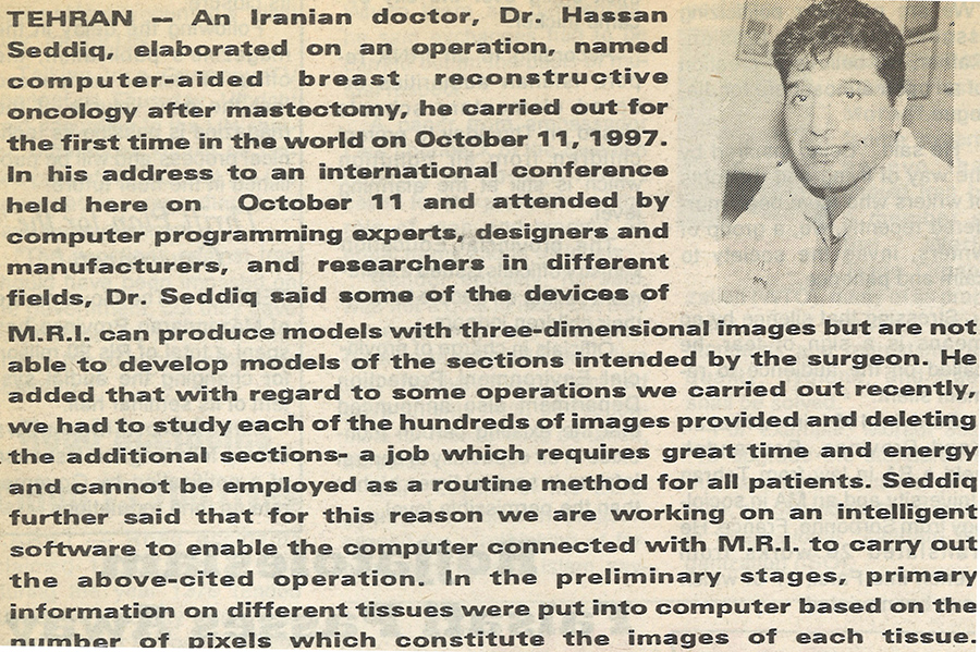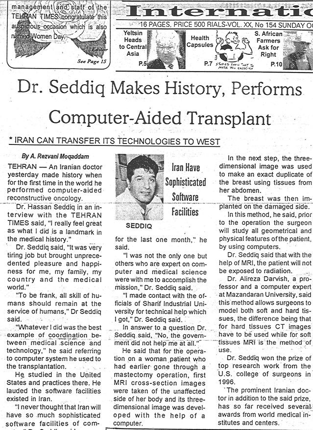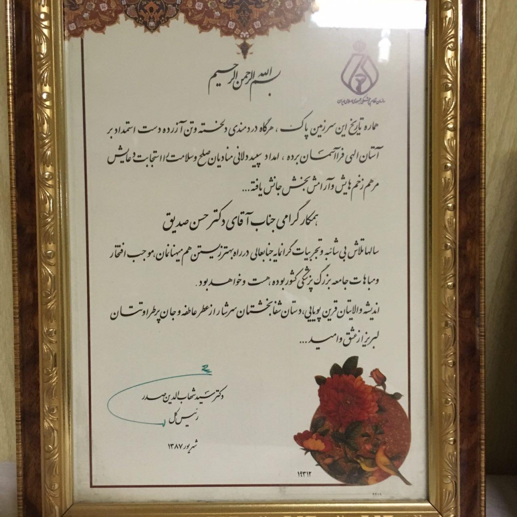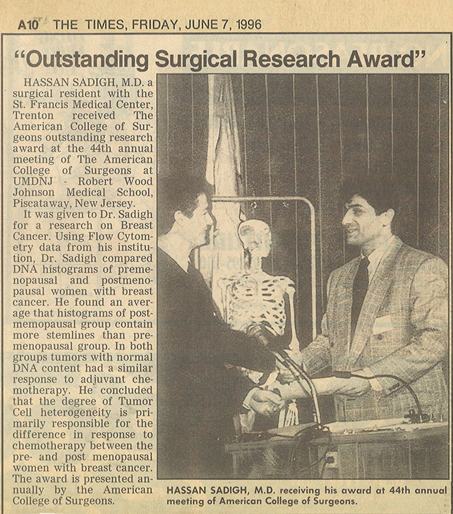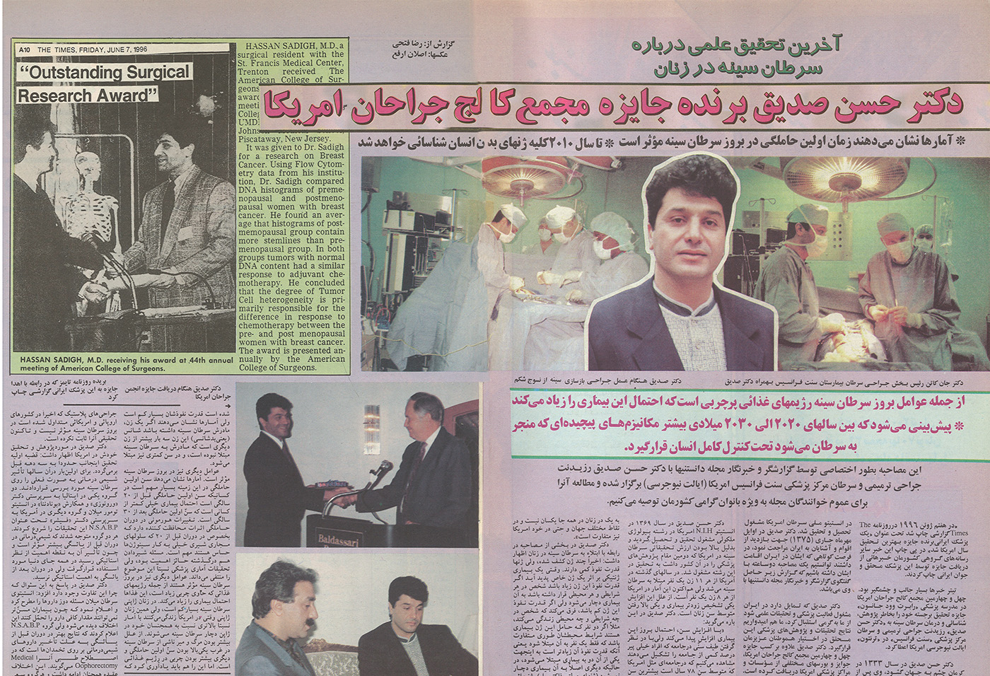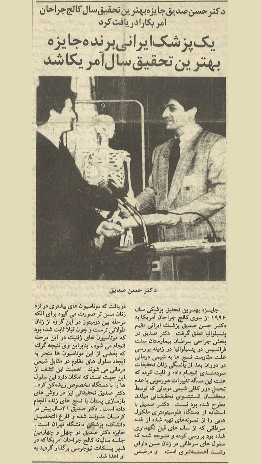 دکتر حسن صدیق جایزه بهترین تحقیق سال کالج جراحان آمریکا را دریافت کرد